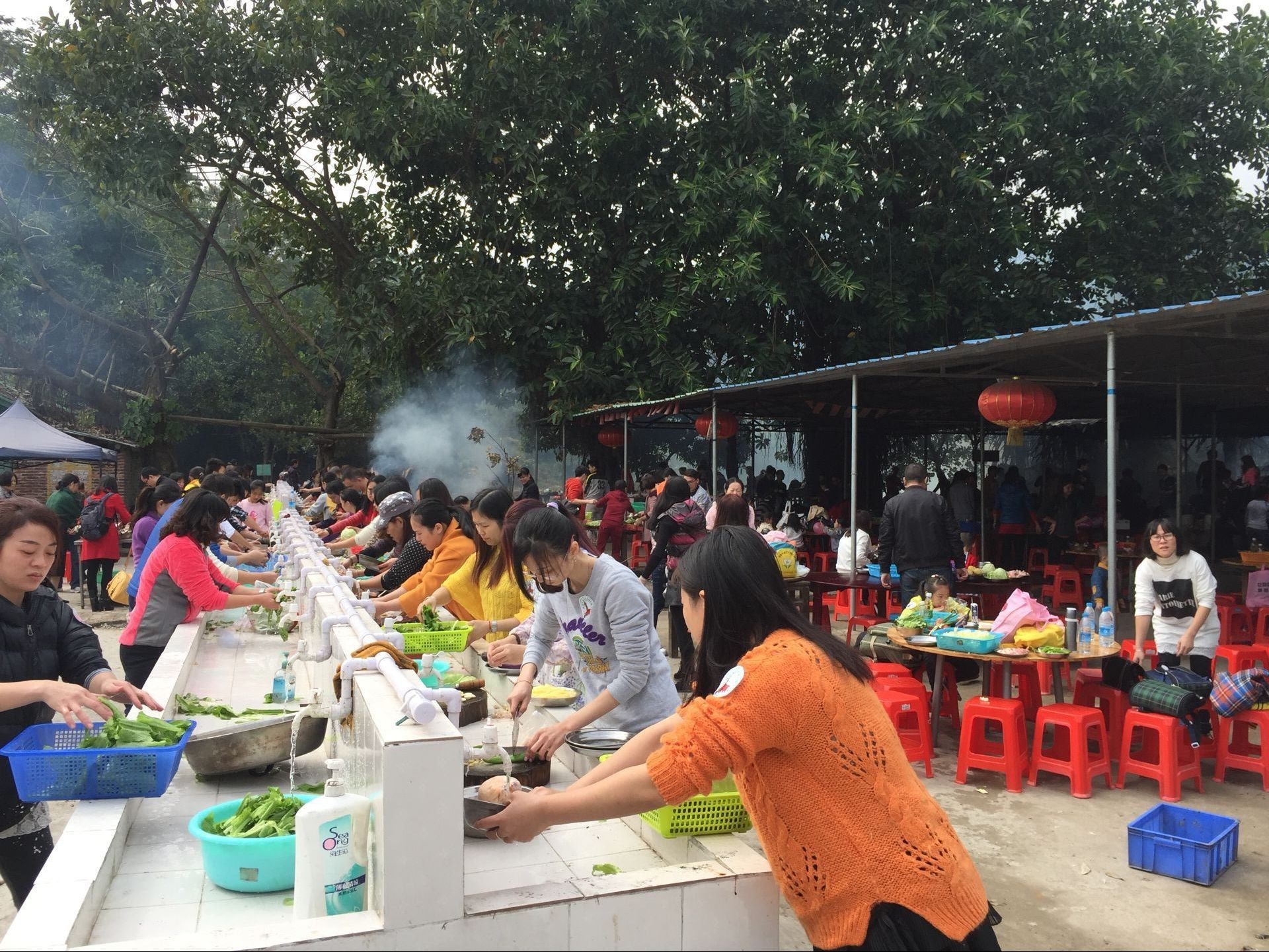 1、按照分工去抓鸡、抓鱼、捡柴火、烧水杀鸡。或者是吃围餐